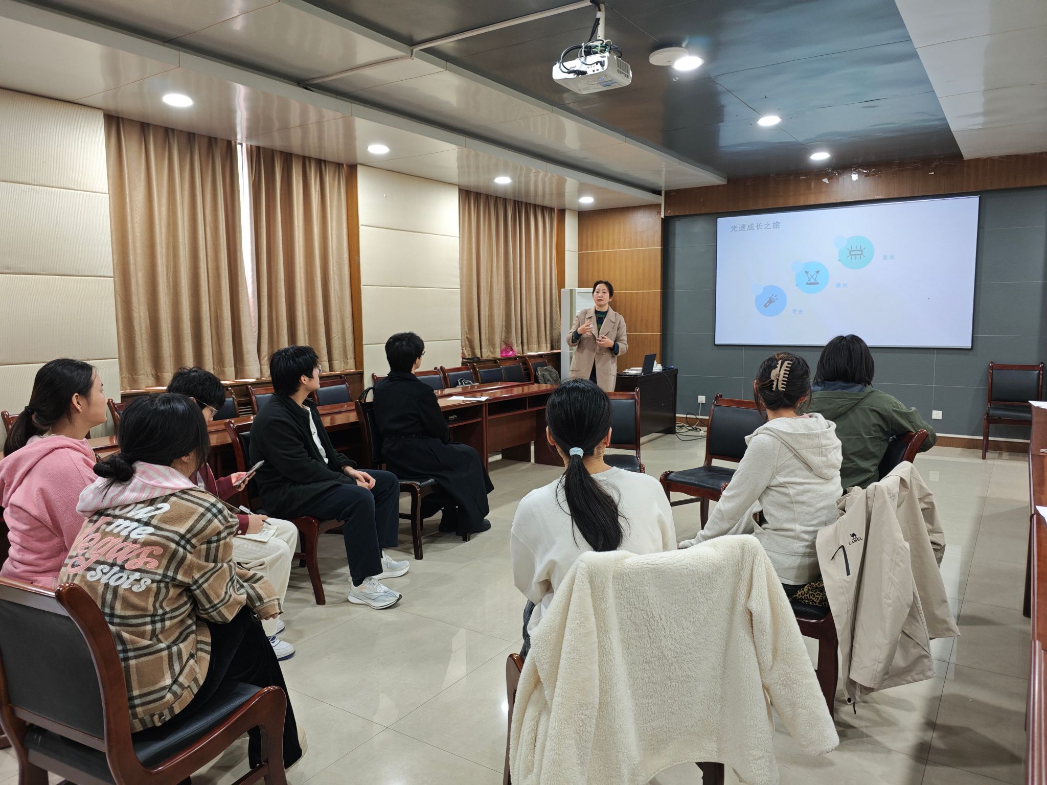 在北校区西大楼Ⅲ区412会议室开展“个人成长与未来发展规划”心理健康团体辅导活动。活动邀请中国科协心理应急志愿者服务队齐静老师作为主讲嘉宾,学院十余名研究生参与活动。
