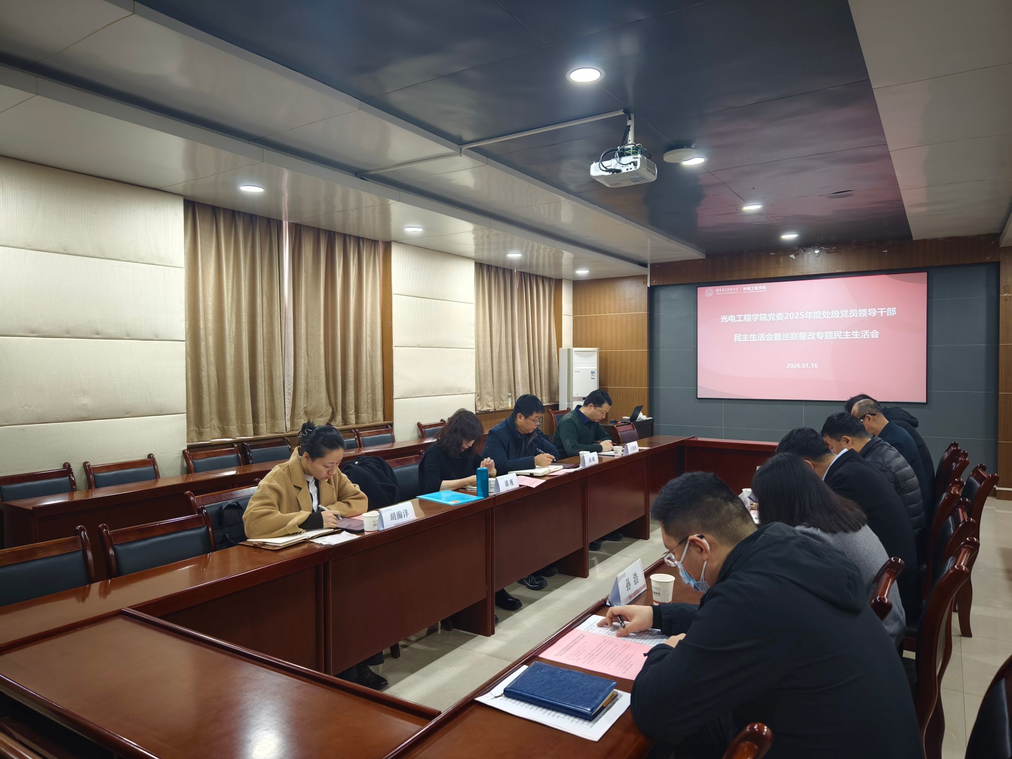 在北校区西大楼三区412会议室召开2025年度处级党员领导干部民主生活会暨巡察整改专题民主生活会,性爱视频第五督导组组长陈峰、组员潘瑾现场督导,校纪委监督检查室主任王尚珂、性爱视频