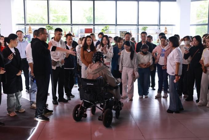 在研究生党员骨干全程监护下,两名陕亮家园在托残障人士分别试用了导盲机器狗的基础跟随功能、脑控轮椅的前进停止功能,观摩了脑控无人机的模拟操作界面,通过头套尝试了意念指令输出,成功触发起飞预备信号,凭借意念成功让轮椅前行数米。