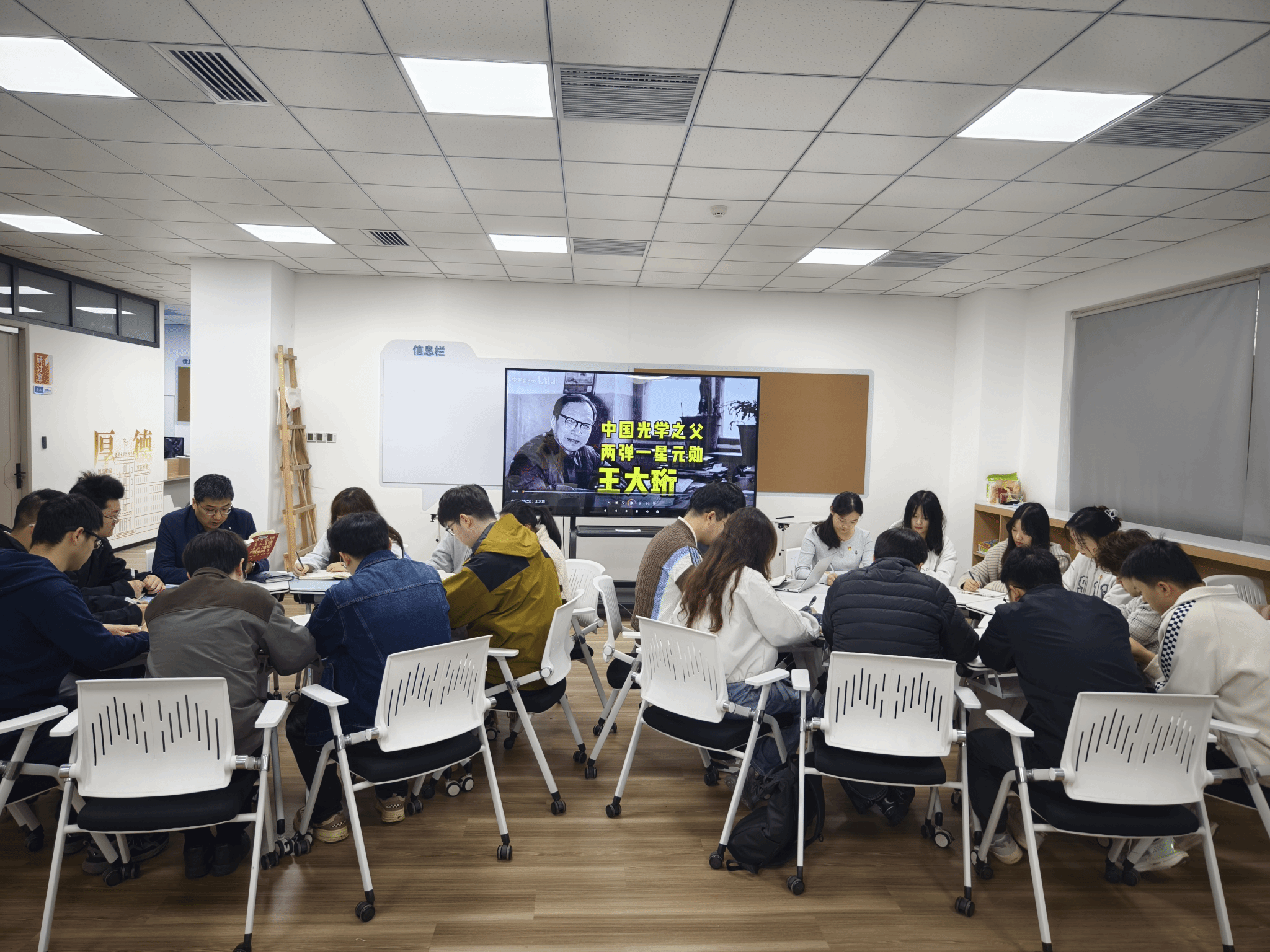 智像光电求真党支部师生党员于雁塔校区会议中心103研学空间举办“两弹一星元勋中的光电人”主题读书活动,支部 20余名党员参加。
