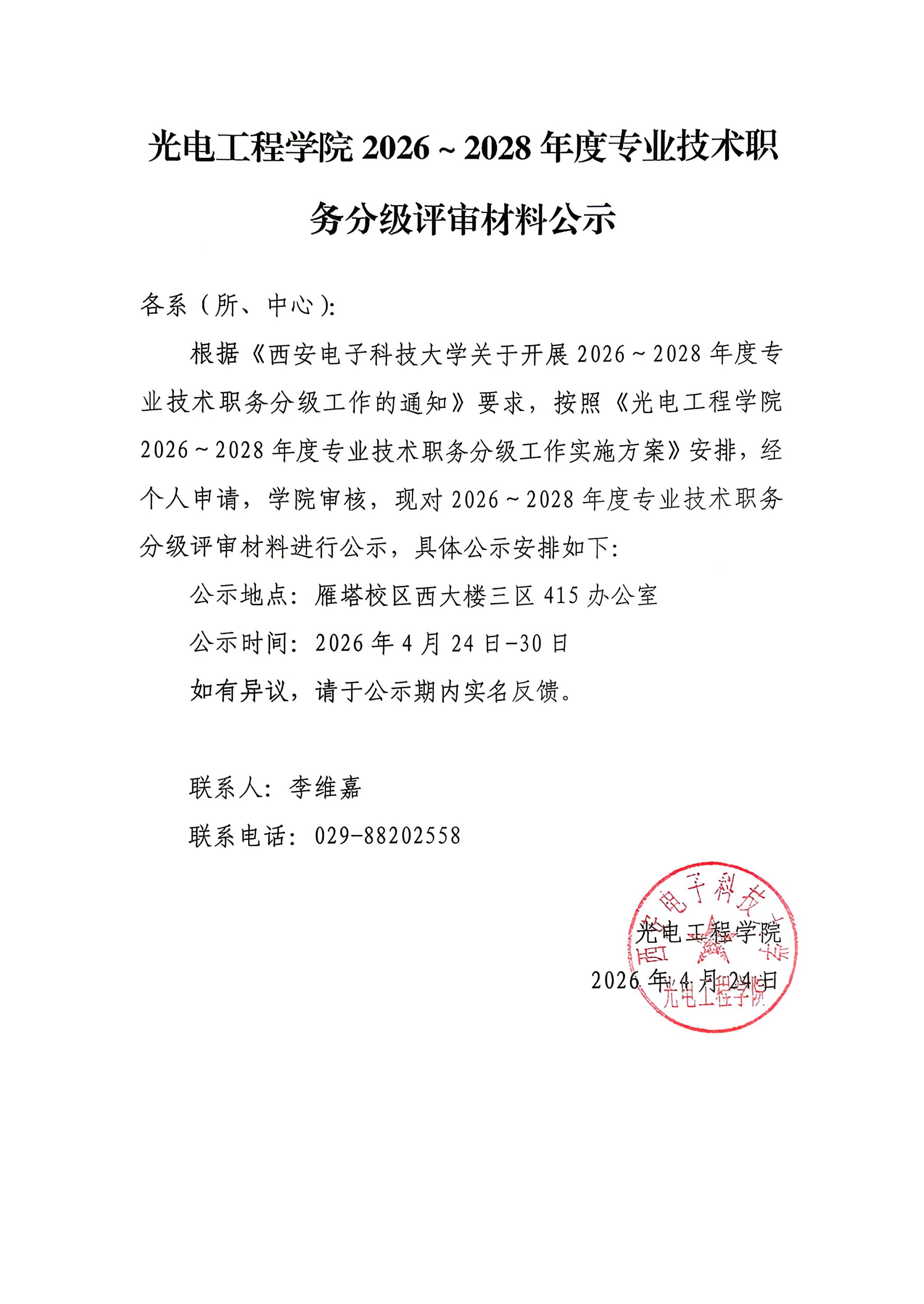性爱视频 2026~2028年度专业技术职务分级评审材料公示